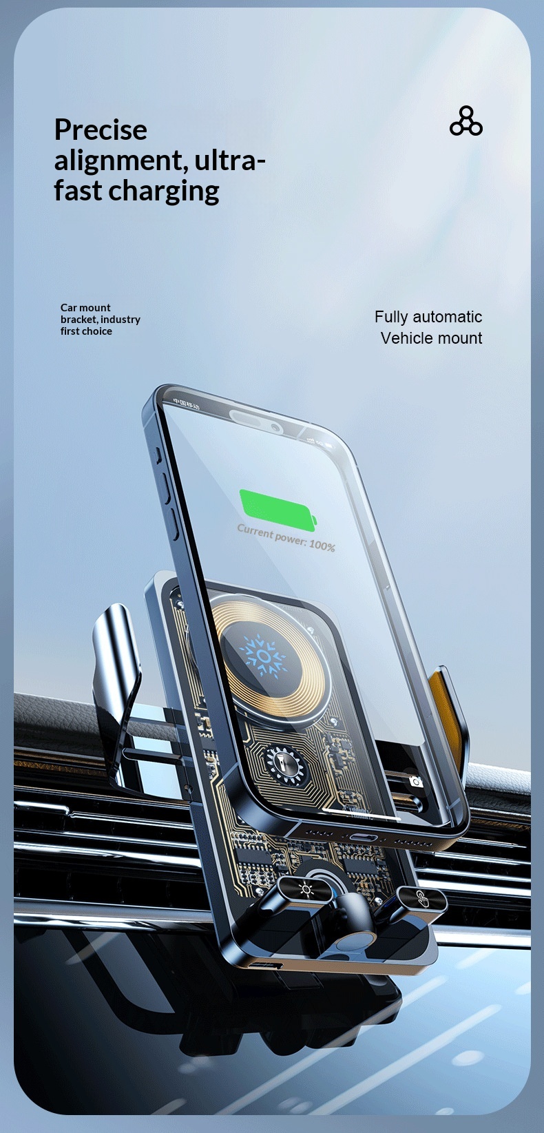 🚗 Ladda mobilen trådlöst medan du kör – helt utan sladdar och krångel.